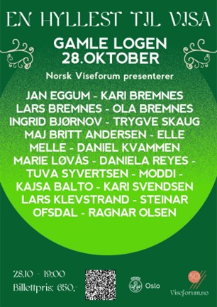 - Tirsdag 28.10 - Norsk Viseforums jubileumskonsert - Gamle Logen, Oslo.