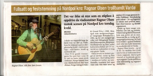 - som beskevet i denne artikkelen fra "Nordlys"Han er en lavmælt ordkunstner og en glad pessimist. I dag ble Ragnar Olsen slått til ridder for sin store innsats bak og på scenen i nord.